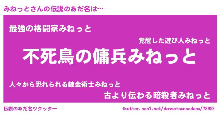 | 胡散臭い通販商品みたいなあだ名 | 『モテモテ間違いなし水晶球…その名も「みねっと」』 |
