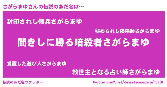 | 意味不明あだ名 | 『住所不定無職さがらまゆ(65歳)』 |