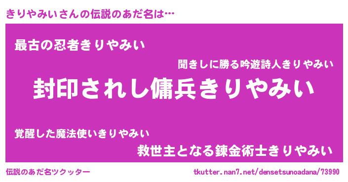 | ヒーロー風カッコイイあだ名 | 『スーパーキリヤミイ』『ネオキリヤミイ』 |