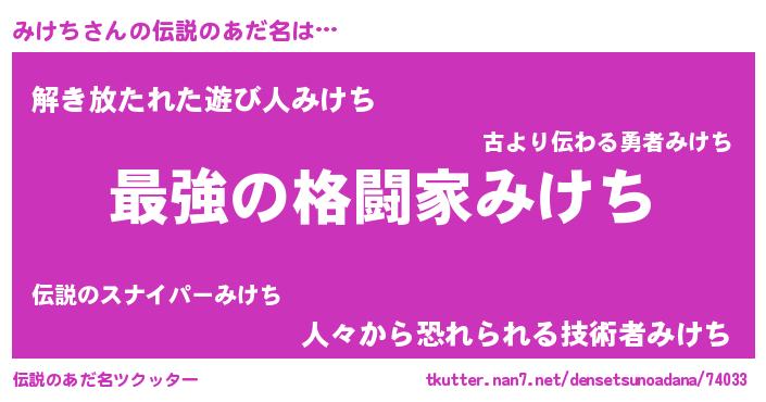 | 意味不明あだ名 | 『自称みけち』『みけちフォーエバー』 |