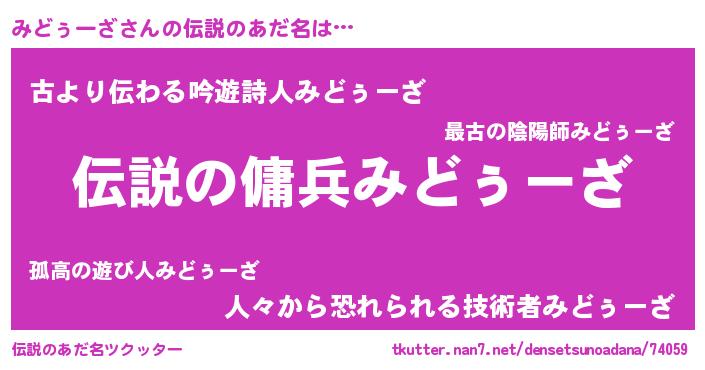 | 男性向けラノベタイトル風あだ名 | 『みどぅーざの憂鬱』 |