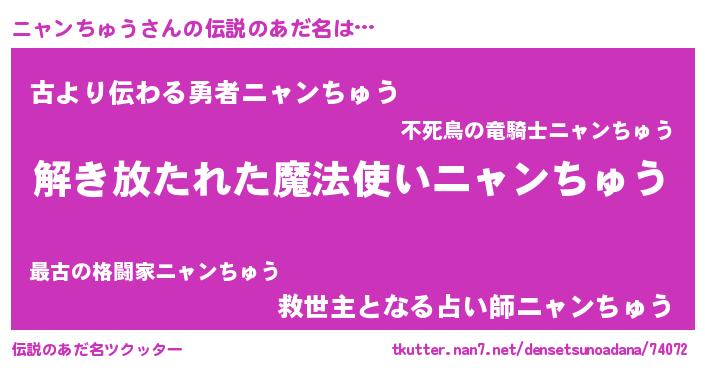 | 胡散臭い通販商品みたいなあだ名 | 『伝統あるサプリメント…その名も「ニャンちゅう」』 |