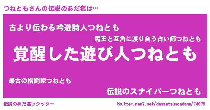 | ヒーロー風カッコイイあだ名 | 『炎刃騎士ツネ』『ネオツネトモ』 |