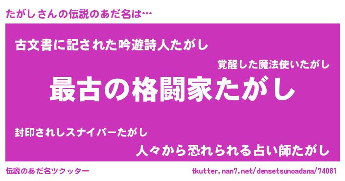 | 意味不明あだ名 | 『たがしフォーエバー』『永久保存たがし』 |