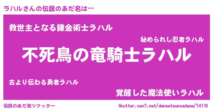 | 女子向けラノベタイトル風あだ名 | 『ラハルアンティーク』 |