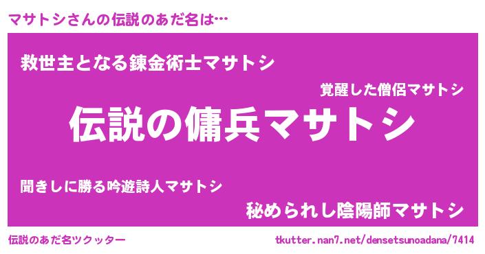 | 男性向けラノベタイトル風あだ名 | 『マサトシの憂鬱』『緋弾のマサトシ』 |