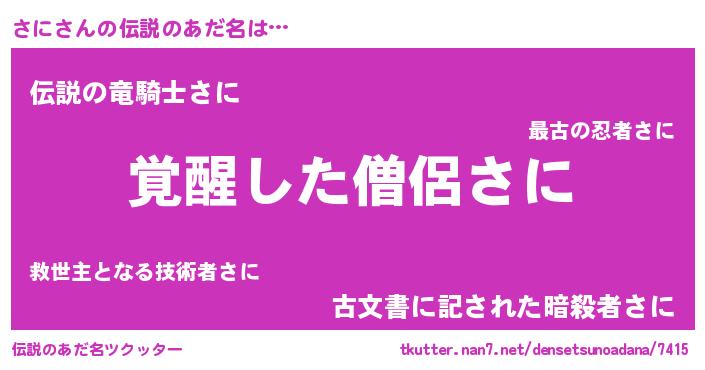 | ヒーロー風カッコイイあだ名 | 『究極戦士サニ』『暗黒騎士サニ』 |