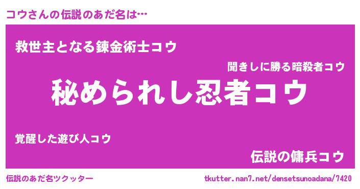 | ファンタジー風あだ名 | 『エターナルコウー』『ヴァルコウーナ』 |