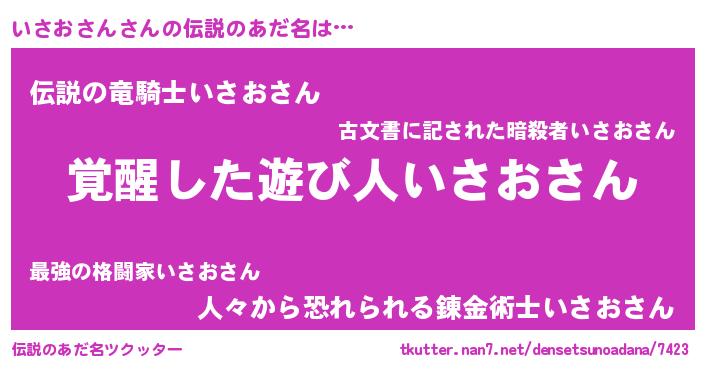 | ヒーロー風カッコイイあだ名 | 『最強戦士イサオサン』『仮面イサダー』 |