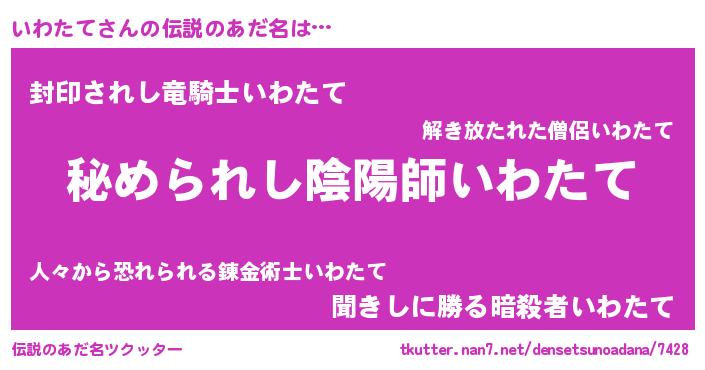 | ファンタジー風あだ名 | 『エターナルイワタテー』『ゼイワトゥ』 |
