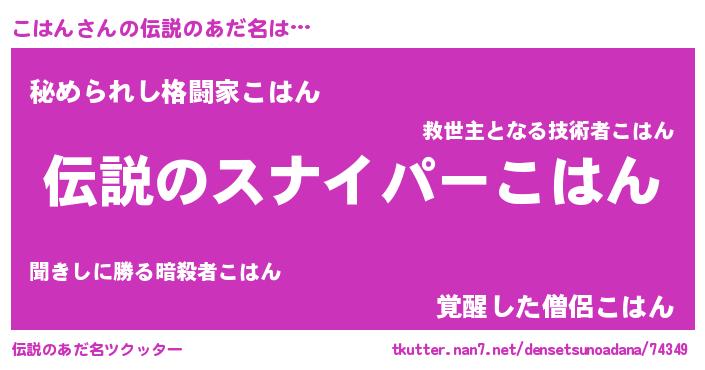 | 男性向けラノベタイトル風あだ名 | 『こはんの憂鬱』『コハンスレイヤー』 |