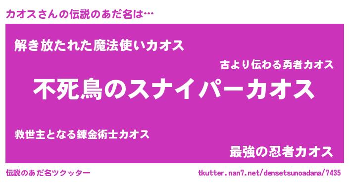 | ヒーロー風カッコイイあだ名 | 『スーパーカオス』『暗黒騎士カオ』 |