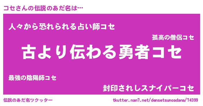 | 意味不明あだ名 | 『永久保存コセ』『眠気覚ましガムコセ味』 |