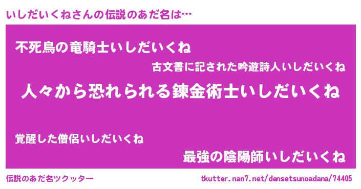 | ヒーロー風カッコイイあだ名 | 『友情の使者いしだいくね』 |