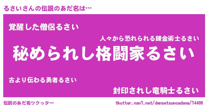 | 男性向けラノベタイトル風あだ名 | 『ルサイスレイヤー』『緋弾のルサイ』 |