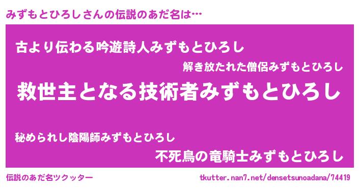 | ヒーロー風カッコイイあだ名 | 『慈愛の使者みずもとひろし』 |