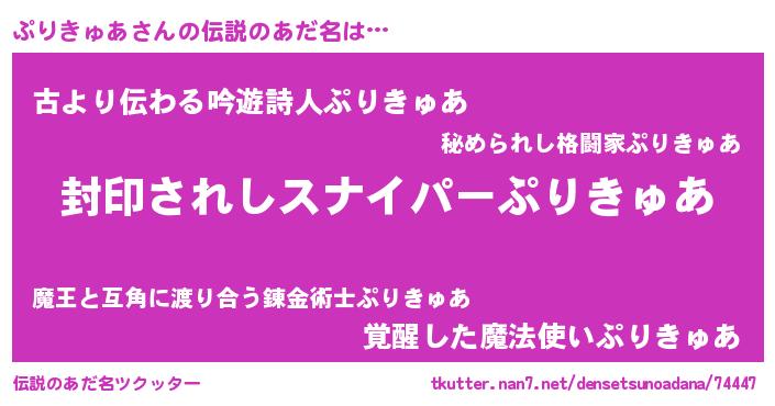 | ヘコむあだ名 | 『ぷりもー』『ぷりきゅあ(笑)』 |