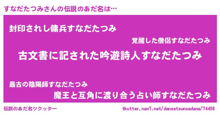 | 意味不明あだ名 | 『住所不定無職すなだたつみ(11歳)』 |