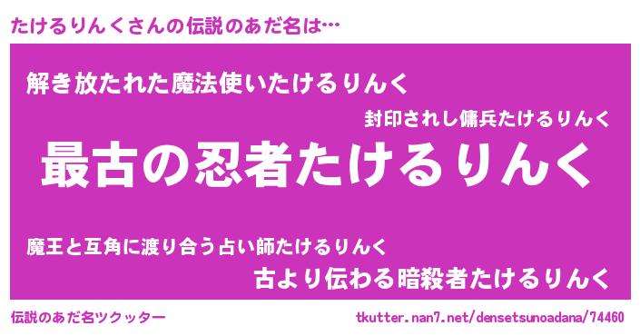 | ファンタジー風あだ名 | 『エターナルタケルリンクー』 |