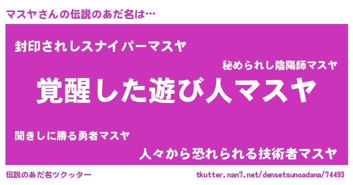 | 男性向けラノベタイトル風あだ名 | 『マスヤの嫁は女の子じゃないと思った?』 |