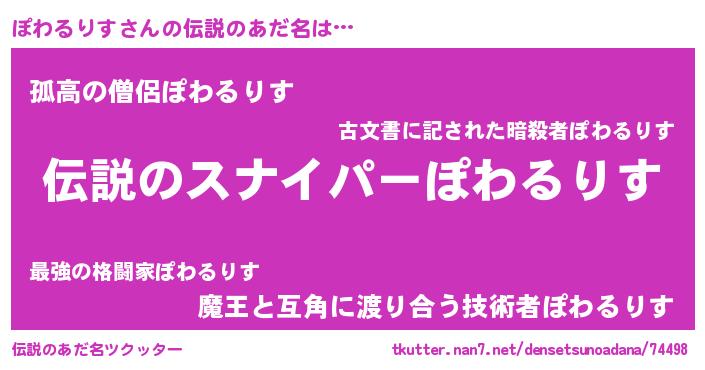 | 女子向けラノベタイトル風あだ名 | 『ぽわるりすなんてお断りですっ。』 |