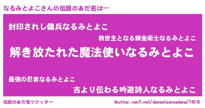 | 胡散臭い通販商品みたいなあだ名 | 『伝統あるサプリメント…その名も「なるみとよこ」』 |