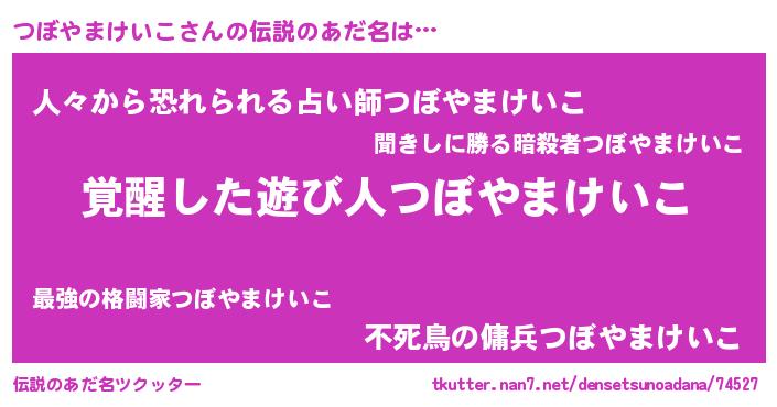 | 男性向けラノベタイトル風あだ名 | 『つぼやまけいこの嫁は女の子じゃないと思った?』 |