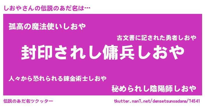| 男性向けラノベタイトル風あだ名 | 『シオヤアートオンライン』 |