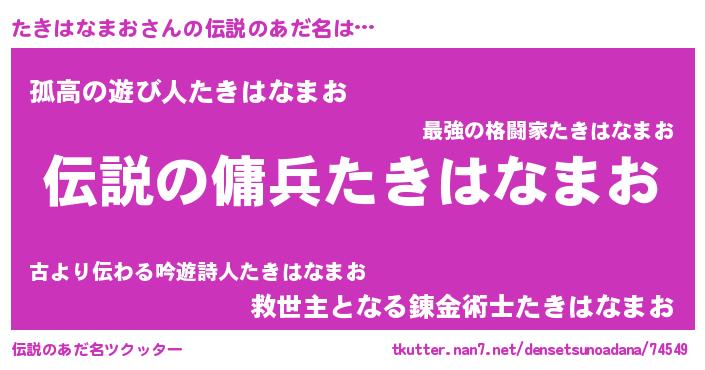 | 男性向けラノベタイトル風あだ名 | 『たきはなまおの憂鬱』 |