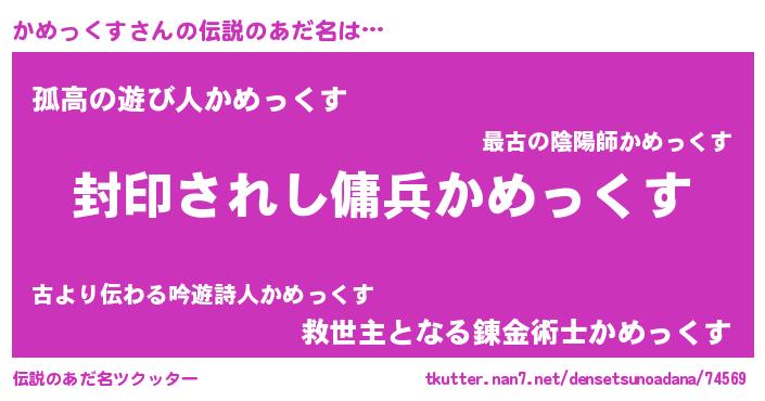 | ヒーロー風カッコイイあだ名 | 『スーパーカメックス』『幻影騎士カメ』 |