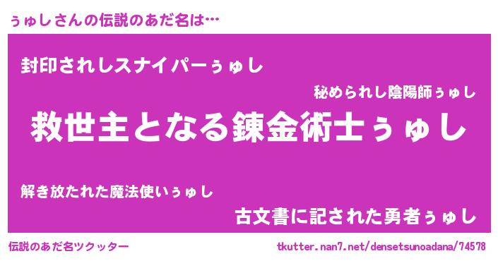 | ヒーロー風カッコイイあだ名 | 『慈愛の使者ぅゅし』『スーパーゥュシ』 |