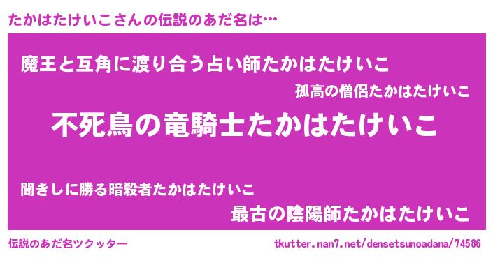 | ヒーロー風カッコイイあだ名 | 『仮面タカダー』『暗黒騎士タカ』 |