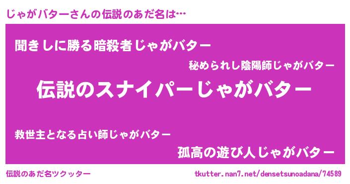 | 胡散臭い通販商品みたいなあだ名 | 『必ず成功する霊験あらたかなお札…その名も「じゃがバター」』 |