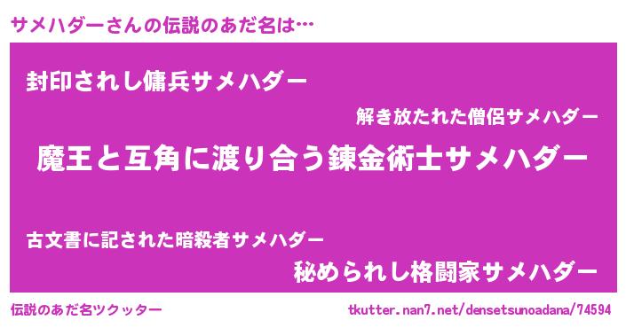 | ヒーロー風カッコイイあだ名 | 『愛の使者サメハダー』『仮面サメダー』 |