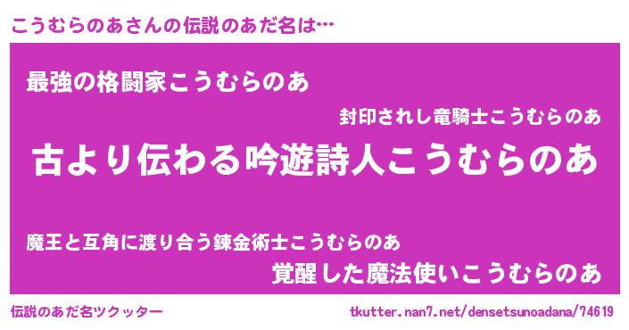 | 意味不明あだ名 | 『永久保存こうむらのあ』 |