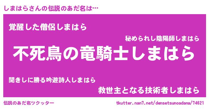 | 意味不明あだ名 | 『ペロリンしまはら』『自称しまはら』 |