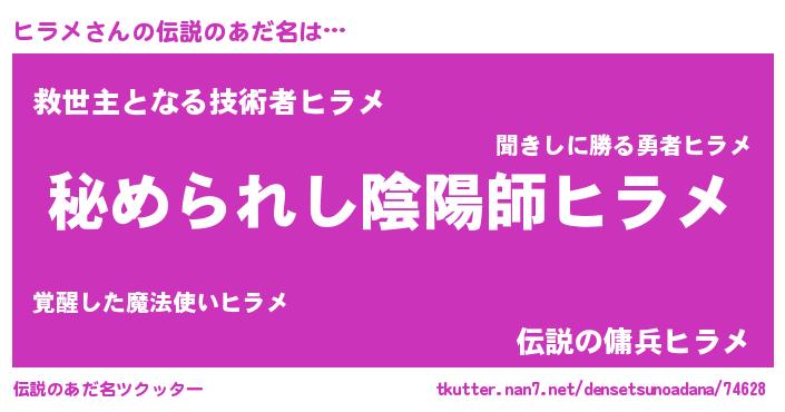 | ファンタジー風あだ名 | 『カークヒララー』『ゼヒラトゥ』 |