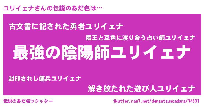 | 意味不明あだ名 | 『ユリイェナフォーエバー』 |