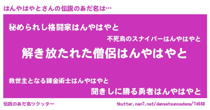 | ヒーロー風カッコイイあだ名 | 『仮面ハンダー』『黄金騎士ハン』 |