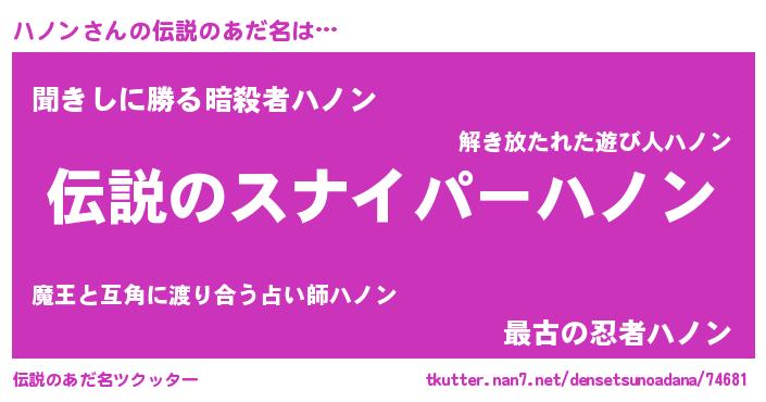 | ヘコむあだ名 | 『ハノっふぃ~』『ハノン(笑)』 |