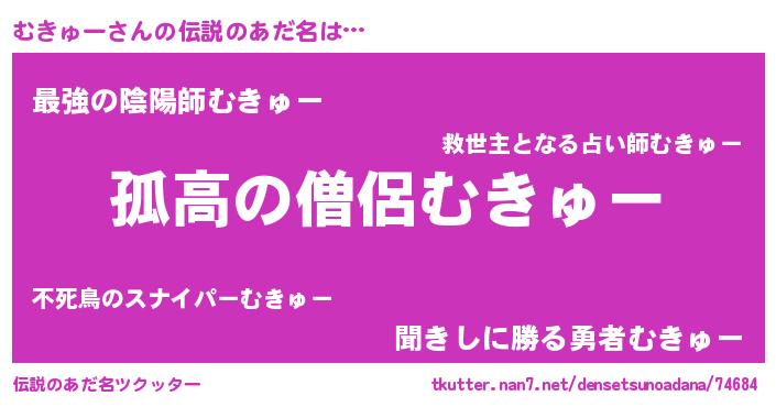 | 意味不明あだ名 | 『住所不定無職むきゅー(65歳)』 |