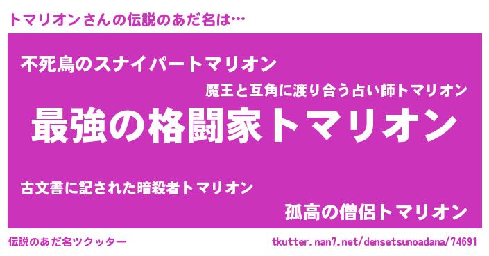 | ヒーロー風カッコイイあだ名 | 『ウルトラトマリオンマン』 |
