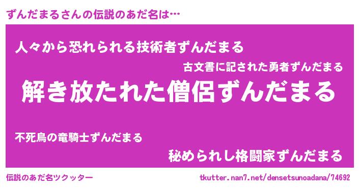 | 意味不明あだ名 | 『自称ずんだまる』 |