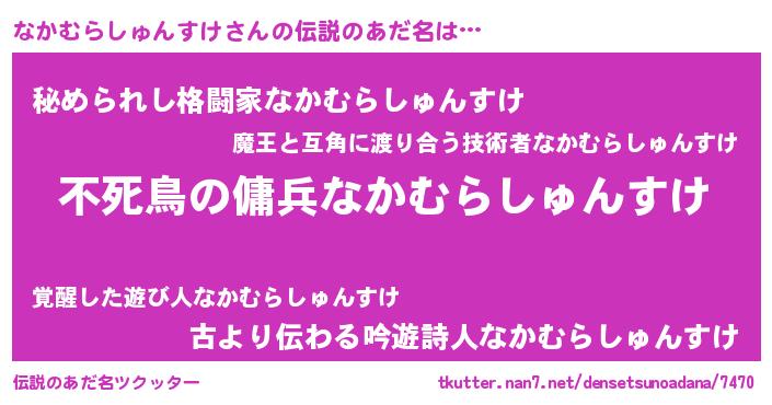| 女子向けラノベタイトル風あだ名 | 『なかむらしゅんすけ姫と円卓の騎士』 |