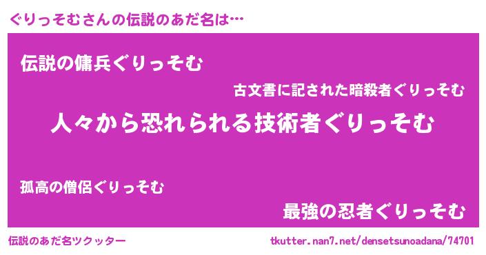 | ヒーロー風カッコイイあだ名 | 『友情の使者ぐりっそむ』『仮面グリダー』 |