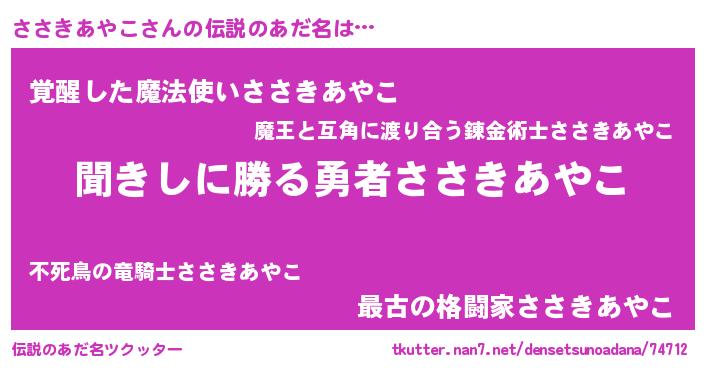 | ヒーロー風カッコイイあだ名 | 『ネオササキアヤコ』『幻影騎士ササ』 |