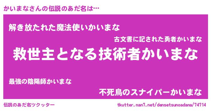 | ヒーロー風カッコイイあだ名 | 『天空の使者かいまな』『銀牙騎士カイ』 |