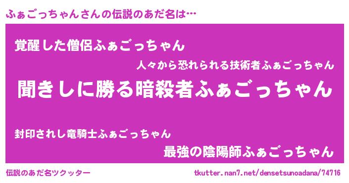 | 女子向けラノベタイトル風あだ名 | 『ふぁごっちゃんなんてお断りですっ。』 |