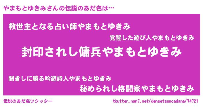 | 男性向けラノベタイトル風あだ名 | 『ヤマモトユキミアートオンライン』 |