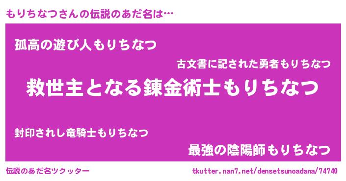 | 男性向けラノベタイトル風あだ名 | 『ノーゲーム・ノーモリチナツ』 |